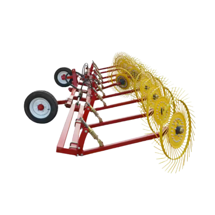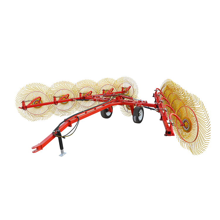 Le but de la collecte d'herbe est de s'assurer que le fourrage est entièrement séché et de faciliter la collection de foin. Les lanières de gazon intégrées sont parallèles à la direction avant de la machine. Les lanières de gazon sont de forme soignée, lâche et uniforme. La distance de mouvement du fourrage est petite et il y a peu d'inclusions.Râteau rotatif de foin convient aux prairies artificielles ou aux terres agricoles.