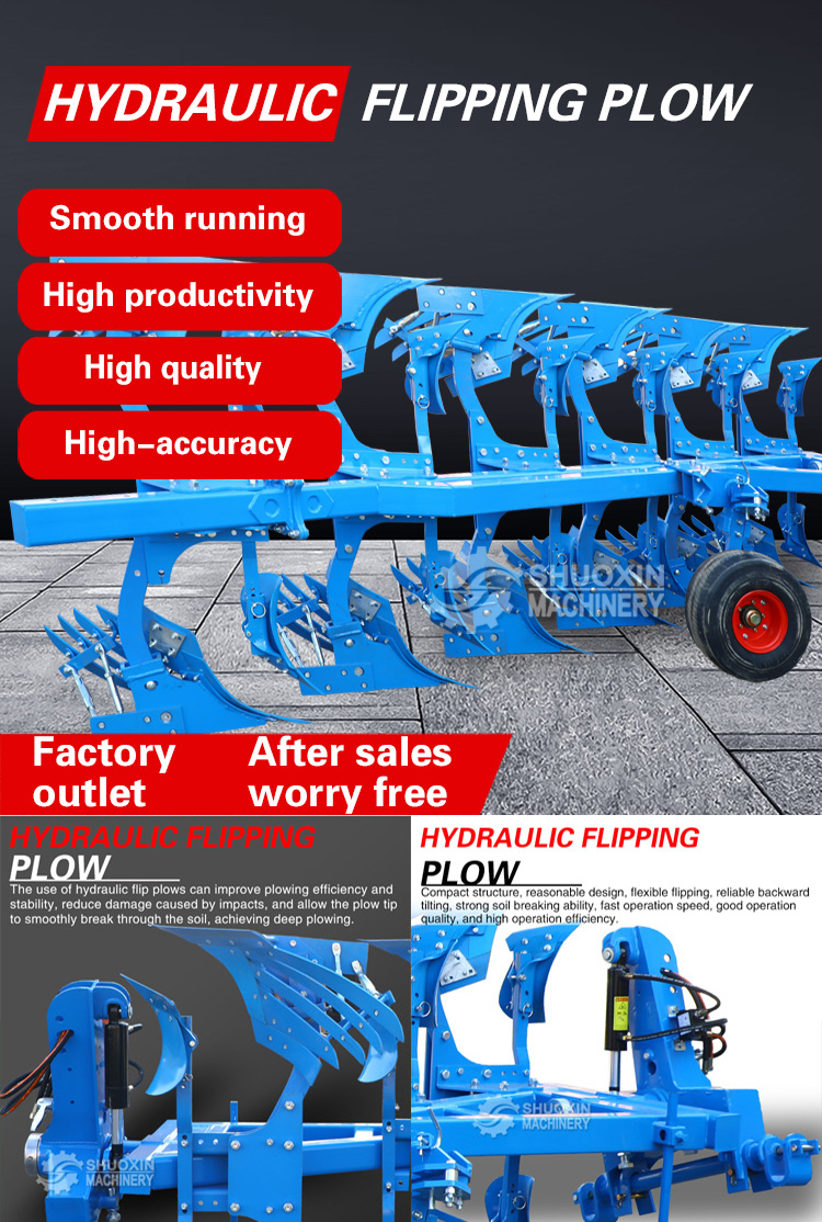 Configuration diversifiée:Afin de répondre aux besoins des différents utilisateurs, leChaux de flip hydrauliquesFournissez une variété d'options de configuration, y compris différentes correspondance de tracteurs de puissance, une taille différente de la sélection du corps de charrue et une variété de modes d'agriculture, pour garantir que les utilisateurs peuvent personnaliser le choix en fonction de leurs propres besoins.