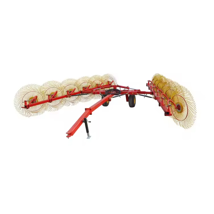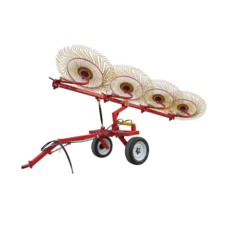 NotreRâteau de râteau de roues rotatifsOffrez une variété d'options de réglage pour optimiser les performances sous différents types de cultures et conditions de terrain. Angle de roue, hauteur de fonctionnement, pression du sol peut être affinée. Cette conception polyvalente facilite la gestion des haricots délicats ou de l'herbe rugueuse.